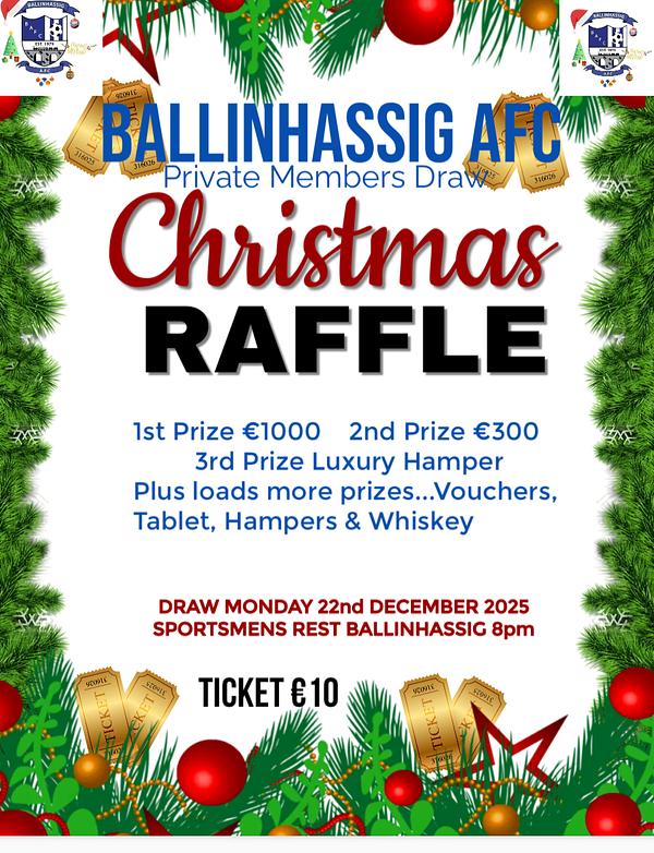 It’s been just over three weeks since we opened the Astro pitch and the value of it has been seen over those weeks ..especially this weekend, after all that rain, when all of our home matches (along with friendlies and helping a fellow club out ) were able to go ahead. It’s a great boost for our teams, to keep the structure and consistency going throughout their league campaigns. The only downside to all of our development has been the ESB backlog and them not delivering the three phase yet for our lights. In order to get full use of the Astro the lights are needed so we had to hire a generator which was not in our budget plans. We are holding a Christmas Draw just to help with this and would be so grateful of your support.. Tickets are €10 each and every member will be given 3 tickets at training this week. Tickets will also be on sale online in the Clubzap Clubshop. As always we thank you for your support, it is greatly appreciated, especially when you can see the benefits of where’s the fundraising is going.